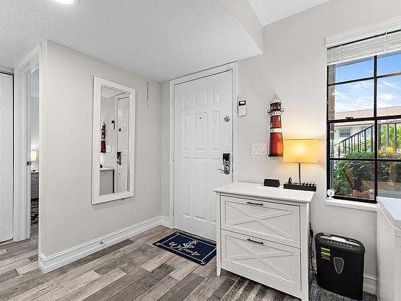 Beautifully renovated and move-in ready, this stunning home offers golf course views right from your patio on the 18th hole. The open-concept layout features a recently remodeled kitchen with white shaker cabinetry, herringbone polished marble backsplash, quartz countertops, stainless steel appliances, and upgraded LED lighting.Elegant details are found throughout, including crown molding, 5'' baseboards, gray wood-look tile flooring, remote-control ceiling fans with adjustable lighting, and newly updated bathrooms. A 2020 A/C system and 2018 hot water heater provide modern comfort and peace of mind, while the tiled patio creates an inviting outdoor space to relax or entertain. Enjoy a prime location just steps from the community pool, tennis courts, and clubhouse, and minutes from I-95, the Florida Turnpike, beaches, dining, and shopping. Best of all, the Golf Club of Jupiterlocated just a short walk awayis undergoing a complete renovation, including updates to the clubhouse, putting greens, fairways, and driving range, making this the perfect opportunity to own in one of Jupiter's most desirable communities.