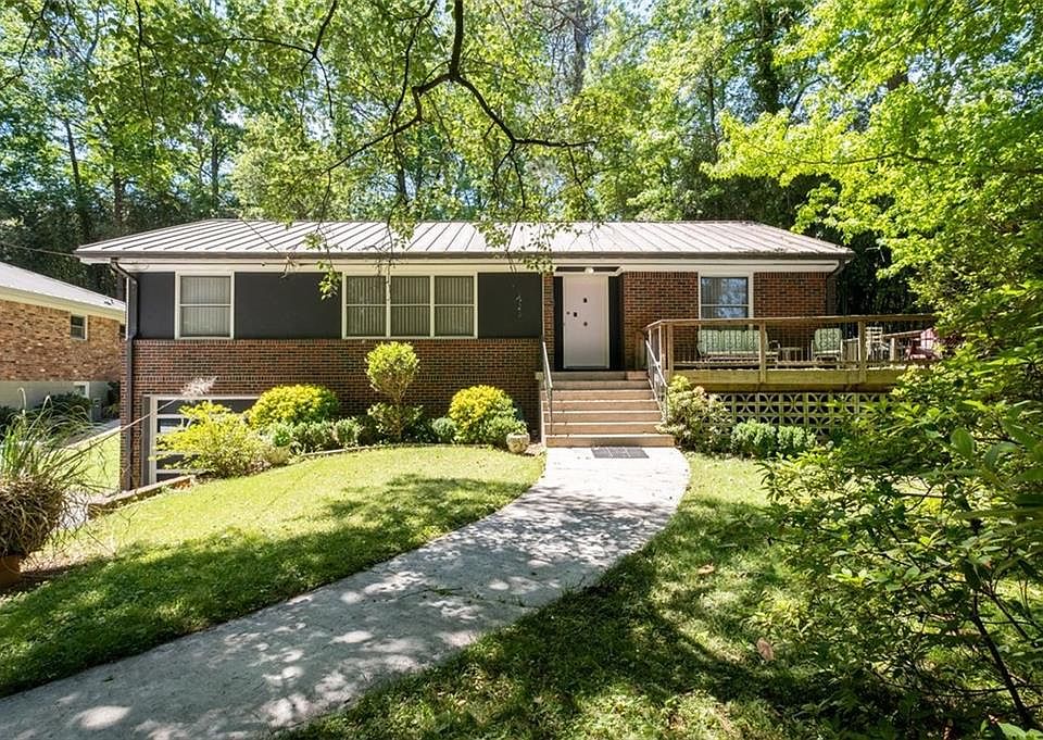 This charming Atomic Ranch home possesses such a terrific mid-century vibe! Located in the popular Briar Hills neighborhood, convenient to everything, this home has so much to love! Let's start from the outside. On the front of the home is an inviting deck, the perfect location for a special gathering or for your morning coffee or evening beverages. The back of the home features two separate doors to the very private back yard, which can also be a special place for relaxing or entertaining. As we enter from the back yard, you'll find an open and inviting, light-filled Great Room with a vaulted ceiling and a wood-burning stove, which you can use as an ambience-enhancing fireplace or a heat-generating stove. It opens to another room, perfect for a den or library or home office. Two bedrooms and two bathrooms are right around the corner. And, the front of the home features a formal living room and dining room. Now, let's talk kitchen. Relatively new refrigerator, with amazing custom metal cabinets. A large unfinished basement can accommodate a bedroom and a bath. And, if you wish to do so, a third floor could be added to accommodate a primary bed and bath. But, don't discard the roof! It has a 50 year life expectancy! There's also a relatively new water heater and relatively new double-pane windows and blinds. Great home in a great neighborhood in a great section of the metro Atlanta area! Come and get it!