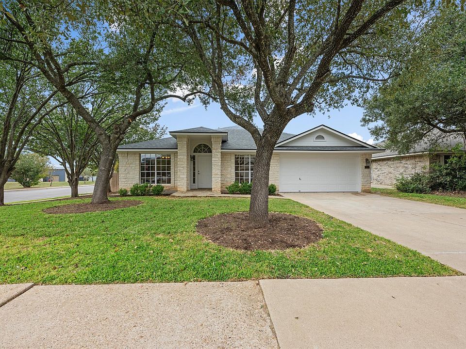 Corner lot single-story home in the sought-after Carriage Hills neighborhood—freshly updated and move-in ready! This true 4-bedroom, 2-bath residence offers a bright, open layout with abundant natural light and a cozy fireplace in the family room, perfect for everyday living. The spacious kitchen features ample counter space, generous storage, a center island, and a walk-in pantry. Recent updates include fresh carpet in the bedrooms (October 2025), vinyl plank flooring in portions of the home, and more. The private primary suite includes a large walk-in closet, double vanities, a separate shower, and a soaking tub. Three secondary bedrooms provide flexibility for guests, loved ones, or a dedicated home office. The front room can be used as a second living area or formal dining—your choice. Relax or entertain year-round on the covered patio overlooking the fenced backyard—a great spot for morning coffee or weekend gatherings. The corner lot location also adds an extra sense of space and privacy. Located in the highly desired Leander ISD, this home is close to parks, the neighborhood pool, well-regarded schools, shopping, dining, and offers easy access to 1431, 183, and more. A fantastic option for first-time buyers, investors, or anyone seeking a move-in-ready home in a convenient Cedar Park location.