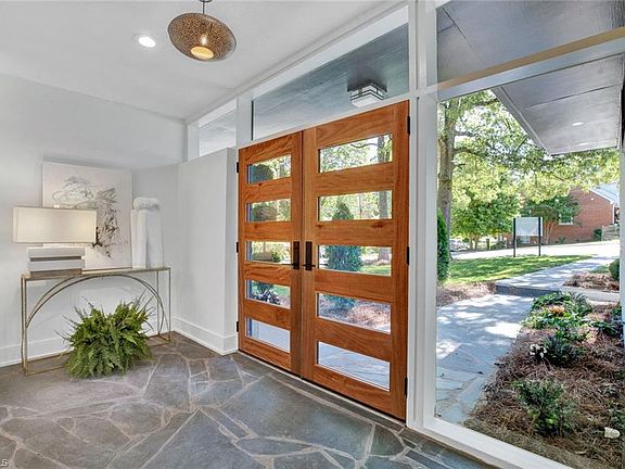 Complete custom renovation of this Mid-Century Modern in heart of Emerywood. Front door invite guests into perfect home for entertaining. Home is open to create a wonderful flow with transitional, organic feel. Kitchen features quartz counters/backsplash, 6-burner gas range on island, overhead hood, SS appl. Large windows wrap living space -with sunroom overlooking a 35'x25' brick courtyard & slate patio. Bathrooms are tranquil with specialty tiles and fixtures. Fireplaces/gas logs in living room & den.