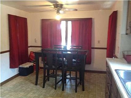 Why rent when you can own this adorable stone siding home on Evansville's West Side! Large living room with hardwood floors and picture window overlooking front lawn. Kitchen and dining room combo with oak cabinetry, vinyl flooring, and includes all the appliances. Master Bedroom with ceiling fan and his & her closets. Full bath in hall with ceramic tile flooring and built-in linen cabinet drawers. Second bedroom with neutral decor and hardwood flooring. Basement family room with tile floor and access to laundry area and storage alcove. Former basement garage is now an open recreation room or storage/utility room with concrete floors. There is a nice raised deck off the kitchen and off street parking. Tree-shaded front yard with backyard storage building. Home was not well kept by tenant, and in need of cosmetic repairs.