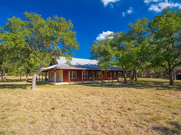 Welcome to this beautiful and unrestricted property in the heart of the Texas Hill Country. Located at the end of a quiet, dead-end road in the well-established Burnett Ranch neighborhood, this property offers 6.34+/- acres and a 1,875 SF Hill Country-style stone home with 3 bedrooms and 3 bathrooms. With no HOA and no deed restrictions, owners are free to use the land as they see fit - including for short-term rentals. Burnett Ranch residents may also access the nearby private Blanco River Park for a small annual fee, adding even more appeal to this scenic and versatile property. The home on the property is a timeless 1,875 square foot Hill Country limestone home built in 1997, featuring 3 bedrooms and 2.5 bathrooms. A covered front porch, metal roof, and open-concept interior make it both practical and inviting. Additional improvements include two small storage sheds, a water holding tank, and new fencing along the western property boundary. The property is equipped with an existing water well and septic system, and electric service is provided by Pedernales Electric Cooperative.