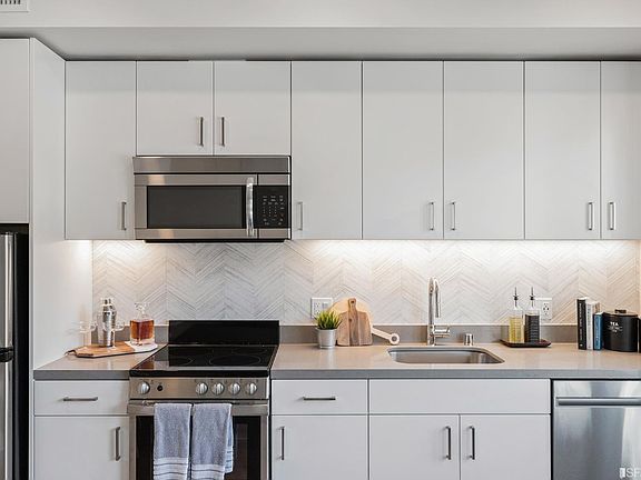 Designed to respond to the needs of the contemporary San Francisco Lifestyle ORAN delivers the latest innovations in quality and environmentally conscious design supported by enriching amenities, including an expansive entertainment view deck with outdoor lounges and fire pits, an Olive grove, open-air gymnasium, barbecue, and a dog run. Situated in the center of one of the city's most culturally diverse and vibrant neighborhoods, the architecturally striking building is an urban oasis in every sense. Health and wellness take center stage at ORAN, the first multiunit residential building offered in San Francisco with individual GPS ionizing systems the technology trusted in schools, airports, and healthcare facilities to help improve indoor air. Residence 303 is a bright and airy 1-bedroom and the perfect starter home or pied a terre. Top of the line new construction with a streamlined and fully equipped kitchen, this home is replete with every amenity you expect and some unexpected. The thoughtful details, and elevator, extend from the roof's landscaped view deck to the parking level and dedicated bike storage. Latch touchless entry and Luxor Locker delivery concierge are included. Photos of similar unit layout and finishes may vary.