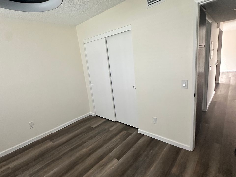 Large two bedroom one bath condominium style apartment with large balcony are. Newly remodeled with new flooring cabinets, counter tops and new paint. Ready for an immediate move in. This great place is inside a small gated community. Water and trash are included in the utilities and laundry room on site. One cover parking assigned.