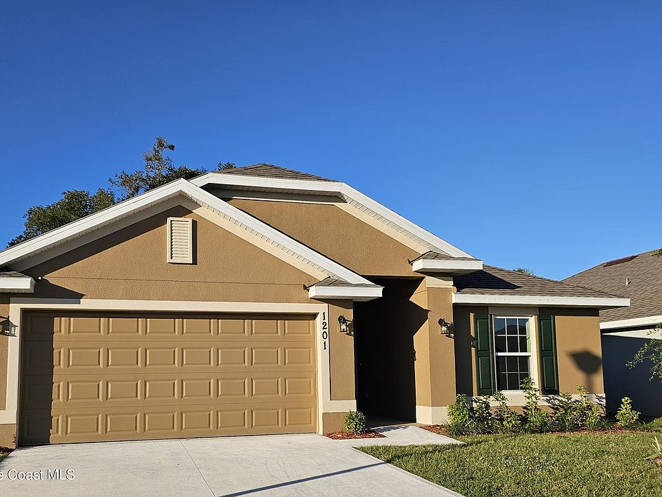 3.99% Interest Rate saving you hundreds monthly with this EXPRESS MOVE IN READY HOME!! Est principle & interest payment of $1714 !! Closing costs covered using our preferred lender (excluding escrow accounts) Secure your new home with only a $1000 Deposit. This home features 4 spacious bedrooms and 2 full baths with an open floor plan with 10' vaulted ceilings. Ceramic tile floors in the living areas, and carpet in the bedrooms. Kitchen features soft close white cabinets w/crown molding, Moen faucets, pantry & stainless steel appliances. Owners Suite w/large walk-in closet, 5' tiled shower and linen closet. Enjoy the Gorgeous 8x20 extended cover porch with no rear neighbors. Built-in pest prevention system, double pane (low E) windows w/storm shutters, upgraded interior doors, energy efficient w/10-year structural builder and manufacturer warranties all included. Low HOA and no CDD fees ! Great Access to Orlando. Photos are sample colors only.