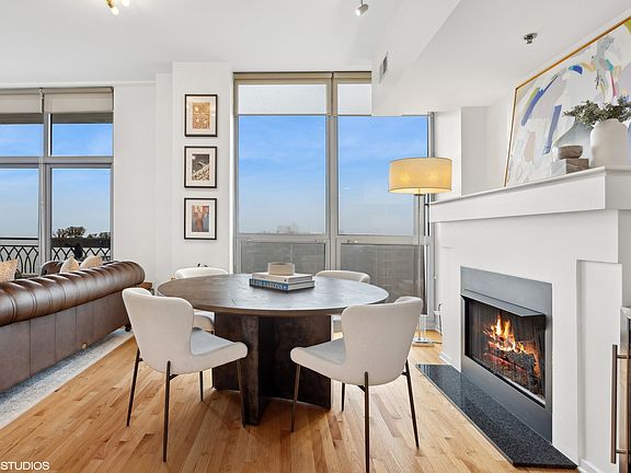 West Loop condo with 2 bed / 2 bath + office available on the 9th floor! This open concept unit is flooded with natural light through the floor to ceiling windows that overlook an amazing Chicago skyline. The main living area includes a spacious living room along with a dining room centered on gas burning fireplace. Enjoy stepping right out onto a large patio directly from the living area with incredible city views. The kitchen is updated with new cabinet hardware, countertops, lighting, and more! A large peninsula separates it from the living area and creating additional seating and prep space. Both bedrooms include walk-in closets, and the primary has a huge on-suite bathroom with a separate tub and shower and new vanity and lighting. The second bathroom is located right by the second bedroom with a new vanity as well. Additionally there is in-unit laundry, a convenient entry vestibule, hardwood floors throughout the common living areas, plus an office area perfect for additional storage and working from home. Included is a prime parking space and extra storage. The building includes a doorman and is in Skinner West school district, as well as walkable to West Loop bars and restaurants!