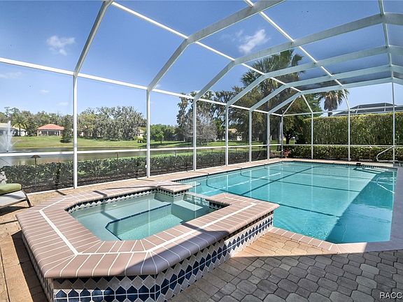 Is your dream of living on a beautiful lake gazing at the fountain while swimming where both you and your partner can swim together in your 16 x 32 ft pool and Hot Tub within a 27 x 53 ft screen enclosure, YOU have found your Oasis! ENJOY A WONDERFUL SAVINGS TOO! Home sits at 85 ft above sea level, in a very friendly neighborhood within the amenity rich Terra Vista Community? Home is nestled on a large homesite with a 30 ft easement, Palm Trees and Bushes for complete Privacy. Pull into the beautiful Courtyard Driveway, & walk through the gorgeous, fused Glass Doors, the sight of the Fountain, Water & Pool will greet you! This beautiful home has 4 bedrooms, 2.5 bath with wood flooring and tile to enjoy. Two of the Bedrooms & bath make up a private suite, every room has a view of the fountain, enjoy the Gourmet Kitchen with warm Maple Cabinets, complete with full pullout Pantry drawers, an island, SS appliances, & a built-in Desk. Enjoy the Quartz Counters in the Kitchen and Baths, Walkin the Office to see the built-in Bookshelves and cabinets, or the wonderful Dining Room with decorative windows. Each bedroom has custom shelving with 3 walk-in Closets. Master Bath has large shower, with bench, two separate sinks, jacuzzi tub. Lighting, Draperies & decorative fans make the warm feeling of this home complete. Walk out to the Pool through pocket Sliding Doors, lots of space to entertain, has STUB-IN for Summer Kitchen. Pool is gas heated, with a variable speed pool pump and Filter. Home has central vac and new HVAC system in 2019 with AIR PURIFIER, accent painted walls. & an expanded Garage. Landscape lighting in the Pool area and around the home highlight the Curb Appeal both day and night. PLUS A CH Social Mbrship!