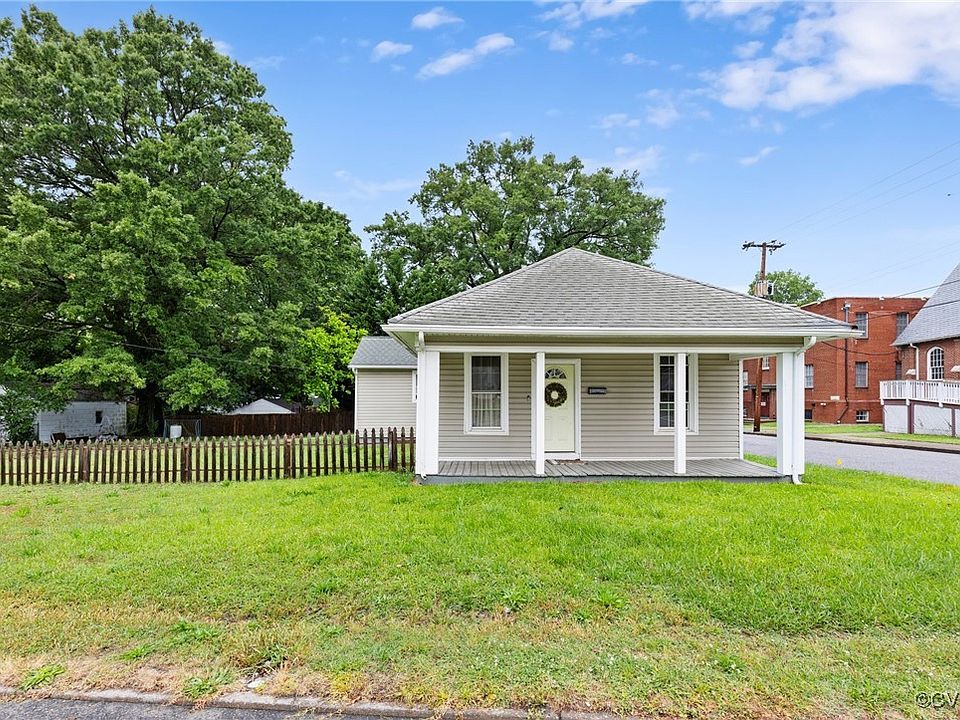 A truly unique, cottage-style bungalow with a low-maintenance exterior is now available! Outfitted with durable vinyl siding, brand new roof, and energy-efficient vinyl windows, this charming home stands out. Pull into the newly paved driveway and take in the expansive lot. Step inside the front door and you're welcomed by a classic shotgun layout that feels open and airy, highlighted by soaring 9+ foot ceilings, timeless character, gleaming hardwood floors, and recessed lighting. The formal living area flows seamlessly into a show-stopping kitchen, anchored by a massive island that’s perfect for entertaining. Featuring brand-new white cabinetry, sleek granite countertops, and stainless steel appliances, this kitchen is truly one of a kind. The open-concept dining area adapts easily to either a cozy or large table setup. The front bedroom is generously sized—perfect for guests or family. The primary suite features a newly renovated ensuite bathroom with modern tile work and stylish finishes. Tucked away for added privacy, the third bedroom works great as a nursery or home office, while the fourth bedroom offers an ideal retreat for visitors or extended family. A dedicated laundry/utility room adds convenience to everyday living. Step outside to enjoy a cozy covered porch that overlooks the spacious lot and side yard—an ideal setting for a future garage or carriage house.