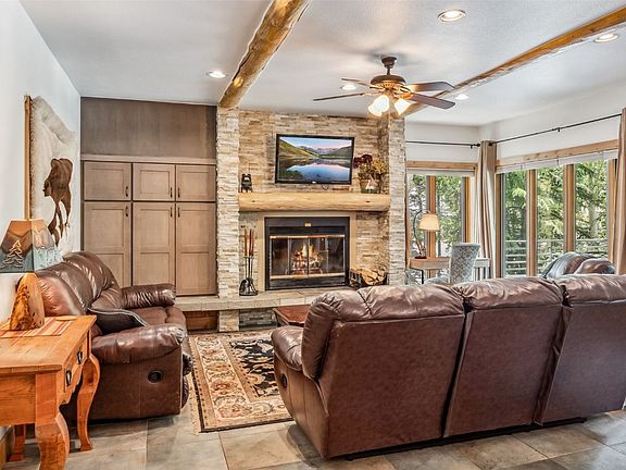 Situated on the second level, this fully remodeled unit features two decks—one off the spacious living room and another off the master bedroom—providing serene outdoor spaces to soak in the alpine atmosphere. Inside, the interior features log beams, knotty pine tongue and groove ceiling, stack stone fireplace and alder cabinets. The condo boasts three bedrooms each with its own full private bathroom, offering ample space for family and guests. A highlight is the sunroom, complete with a hot tub, offering views of the ski area—an ideal spot to relax après-ski or after a day of mountain adventures.