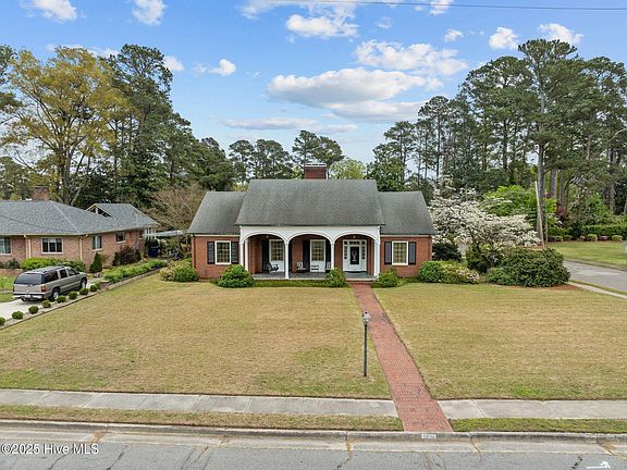 Lovely three bedroom brick home on corner lot with large front slate porch. Formal living and dining rooms, hardwood floors throughout, 9 foot ceilings, large laundry/mud room, and brick patio. Two fireplaces, built in bookcases in wood paneled den, walk in closet in primary bedroom. This is a beautiful must see home with lots of architectural character.