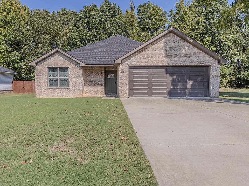 Built in 2022, this 3-bedroom, 2-bath home offers the perfect mix of modern style and comfortable living. The open-concept layout connects the great room, dining area, and kitchen for a bright, welcoming flow. The kitchen features crisp white cabinetry, stainless steel appliances, pendant lighting, a large island with seating, and a walk-in pantry for added storage. The split-bedroom design offers privacy for the spacious primary suite, complete with a tray ceiling, dual vanity, and a walk-in closet. You’ll also enjoy a formal dining area, roomy laundry space, and easy-care stained concrete floors throughout. Relax on the covered front or back porch overlooking the fully fenced backyard with plenty of space to entertain or play. With a 2-car garage, neutral finishes, and a move-in-ready feel—this home checks all the boxes!