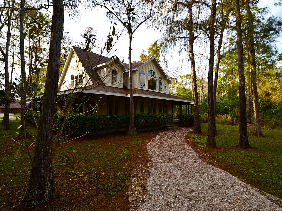Welcome Home To Country Life in the heart of the City! This gorgeous 3 bed, 2.5 bath on 2.5 Acres is ready for a new owner! This home features a BRAND NEW Metal Roof, A/C & Water Heater only 3 years old, FULL house Reverse Osmosis System installed in 2017, & Automatic Front Gate with Key Pad installed in 2017! Included in the sale is a Washer & Dryer, plus a Jacuzzi that sits comfortably under a covered extension of the porch! The home was just freshly repainted, & brand new vinyl wood flooring added throughout the entire home. Enjoy your cup of coffee or glass of wine on the front or back porch, it is almost a complete wrap around porch with so many possibilities to enjoy the outdoors. Upon entering the front door you immediately walk into the entry way that welcomes you with a beautiful staircase, high ceilings, and a chandelier. Straight ahead is the spacious living room, high ceiling and tons of windows to enjoy the outdoor views. To the right you have a formal dining area, that leads into a large kitchen with additional space for a breakfast nook, close it in for more storage or make a butlers kitchen! 3 car garage with workshop! Split bedrooms, master is on the first floor!