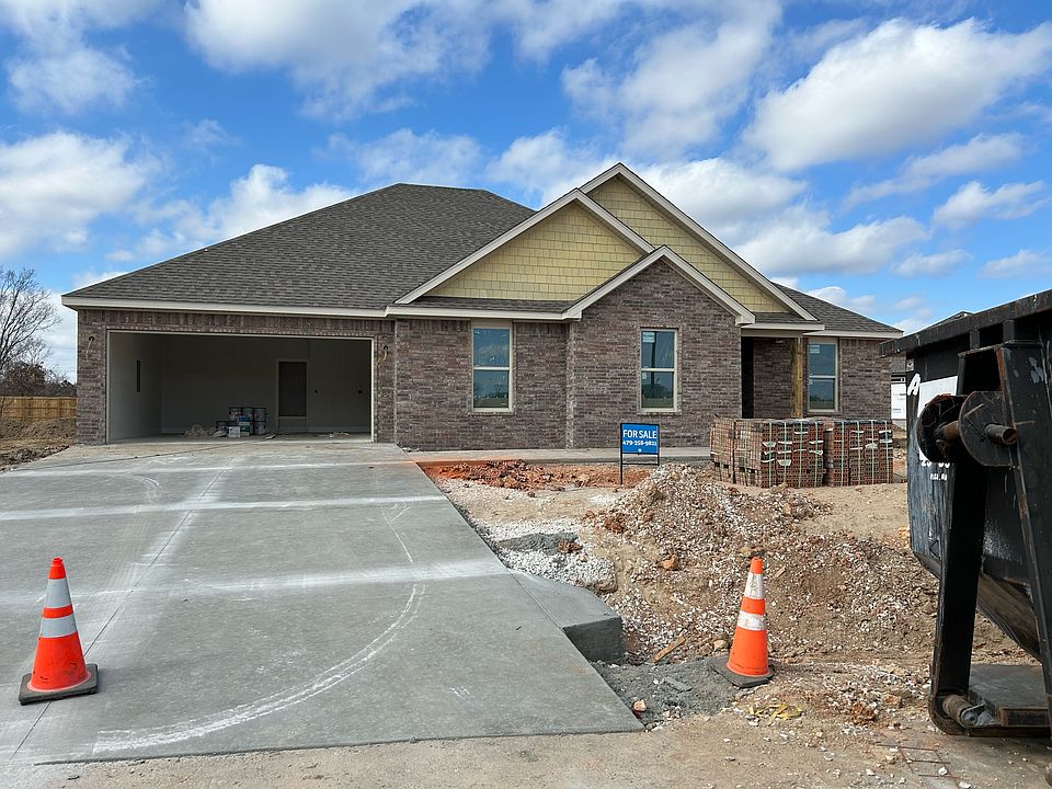 The well-designed Jackson Plan, boasts 4 large bedrooms, 2 full bathrooms, and an impressive 2140 sqft of living space, providing the perfect blend of elegance and functionality. Step into the heart of the home, where the open-concept design creates a seamless flow between the living area, dining space, and kitchen. The tall vaulted ceilings of the living room enhance the sense of grandeur and sophistication, making this space perfect for both casual family gatherings and formal entertaining. The kitchen is a chef's delight, with exquisite high-end countertops and beautiful custom-cabinetry that exude timeless charm and modern appeal. The pantry ensures ample storage space for all your kitchen essentials. Indulge in the luxury of a large outdoor patio space, ideal for embracing the beautiful Arkansas weather, hosting barbecues, or simply unwinding. The master suite is truly exceptional. Featuring a stand-up shower, separate whirlpool tub, separate vanity spaces, and an oversized closet creating the ultimate spa-like experience in the comfort of your home. This plan also features a 2-car garage, providing ample space for your vehicles and additional storage needs. This 4-bedroom, 2-bathroom plan in Saddle Hill Estates is a true gem. Embrace the perfect blend of style, comfort, and community living that this 2140 sqft home offers.