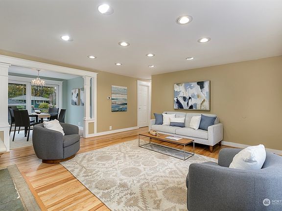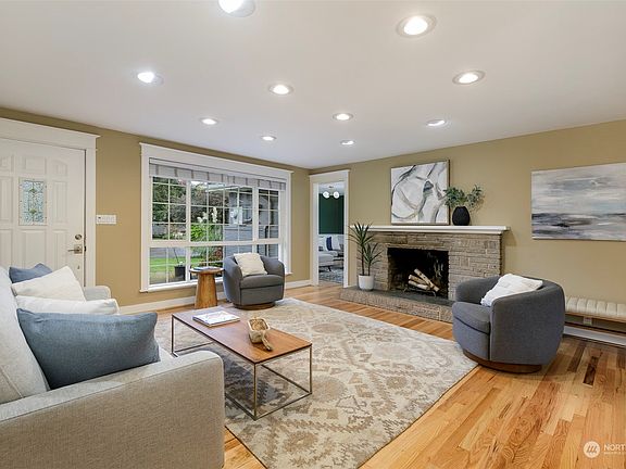 Welcome to this single-level Broadview home on a street-to-street lot. The living room features refreshed hardwood floors and a cozy fireplace. The dining room opens to a spacious patio and fenced backyard for easy indoor-outdoor living. The chef’s kitchen features a gas range and plenty of counter and cupboard space. The family room, complete with a fireplace, provides a versatile space for relaxation and gatherings. The bedroom wing includes three bedrooms and a full bath. The laundry room features access to a bathroom. Nearby Carkeek Park offers outdoor enjoyment, while commuting is a breeze with easy access to freeway, transit, and light rail. Enjoy comfort and convenience near essential amenities and recreation. Pre-inspected!