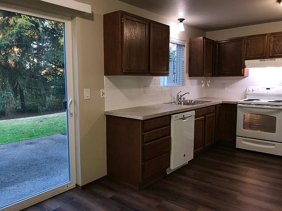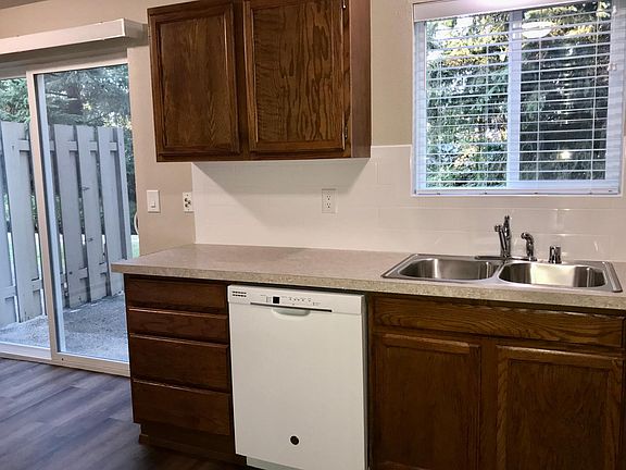 Puyallup townhouse in a wonderful private location just minutes to downtown, the Mall, or Sumner. This unit is tucked away on a cul-de-sac at the end of a private road with a dense greenbelt behind providing great privacy. Recently refurbished with all new: paint, planked flooring and carpets, new counters, tile work, sinks, faucets, new laundry and more. Includes a full size single garage with opener.
