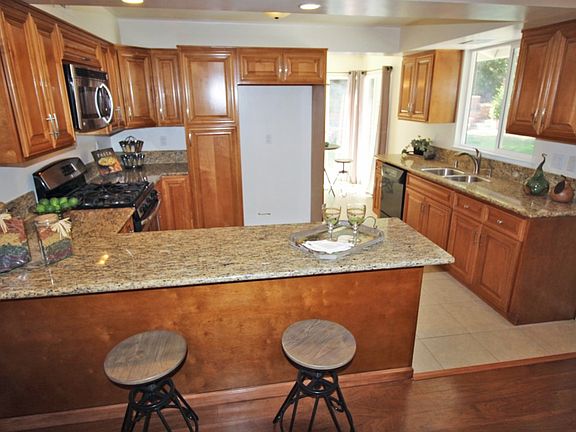 Welcome to this gorgeous remodeled home. It has a newer kitchen w/ plenty of cabinet space, stainless steel appliances, granite counter tops, newer fixtures, 2 bathrooms, nice flooring throughout, paint, newer roof, HUGE back yard, dual glass window and doors. This property is located in a great area of Granada Hills (North or Rinaldi St) a great location due to its private setting, award winning public schools, freeway access, and shopping centers nearby. The pristine tree-line street offers tranquility and a great place to call home. The backyard offers a "park like" feel with plenty of space and privacy with trees all around. Don't miss out on this great property.