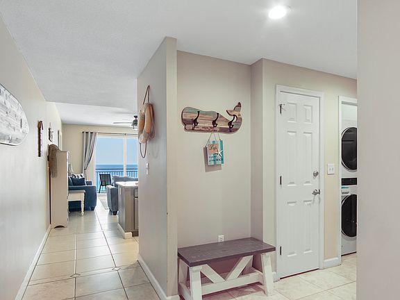 Gulf front condoGranite counter topsNeutral paint colorsGulf front master suiteAll tiled floorsCustom cabinetsStainless appliances