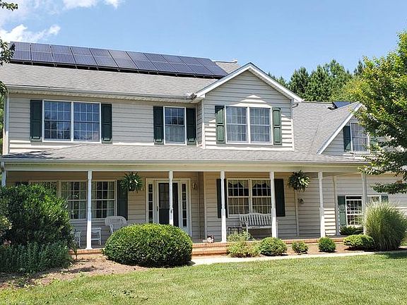 Pristine condition 2 story home features 4 bedrooms plus huge bonus room on upper level. Light and bright with country kitchen with island, bump out and newer appliances. Side load 2 car garage. Solar electric and solar water heater systems are owned and paid off. Huge relaxing front porch and quiet location. Professional architecture plan has been followed since house was built. 2 zone heating and air with propane tank owned, not leased. Living room with fireplace, formal dining room and first floor office. Solar system dramatically reduces monthly expenses