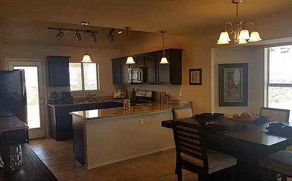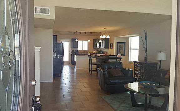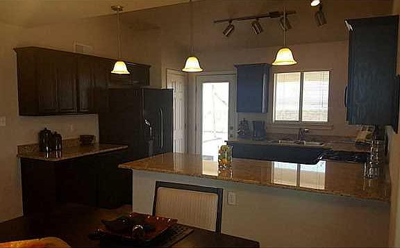 1931 sq ft 4 bedroom 2 bath open floor plan with the gathering room off of entry which leads to the dining room and large kitchen in this open floor plan home, Large kitchen with lots of counter and cabinet space including a peninsula and eating bar, Large master suite with its own loft big walk in closet and a full bath with his and her sinks and vanity's. Home has refrigerated air, tile floors and granite tops throughout