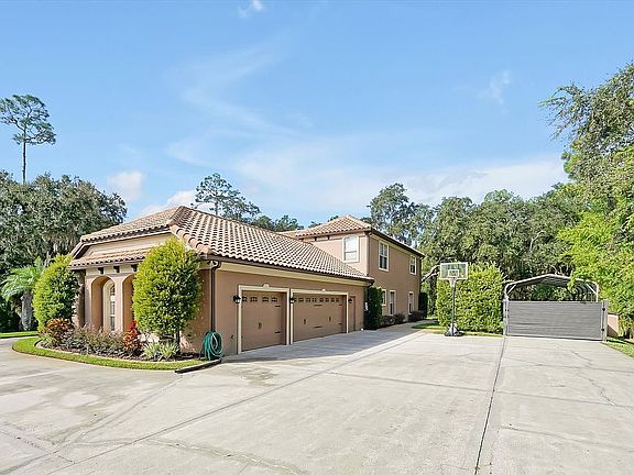 Beautifully maintained 4/5 bedroom, 4 -bath pool home in highly desirable Live Oak Estates. Discover the perfect blend of privacy, peace and relaxation. Featuring a split floor plan with elegant travertine and hardwood floors and oversized three car garage, this home offers both style and functionality. A large foyer invites you to a formal living room with wood burning fireplace, formal dining, office/ 5th bedroom and spacious great room. Cook amazing meals in the large eat in kitchen with double ovens and a gas cook top. A wine bar with 2 beverage refrigerators, large walk-in pantry and plenty of storage complete a perfect space for all your daily hosting and living needs. A large primary bedroom includes 2 separate walk-in closets and french doors opening to the beautiful, covered lanai. A luxurious bathroom awaits with separate vanities, jetted deep spa tub, walk-in shower with rain and massage shower head and private toilet space. 3 bedrooms, laundry room, jack and jill bath and guest bath complete this impeccably designed main floor. Second story includes theater room 2 bonus rooms and a bathroom. Step out to your private covered lanai with wood burning fireplace, ideal for relaxing by the sparkling pool or hosting gatherings. Enjoy your backyard paradise sitting on over an acre of serene space with fully-pavered fire pit. While tucked away from the hustle and bustle, you’re still just minutes from shopping, dining, and everyday conveniences. Minutes from top-rated schools, Medical City, Orlando International Airport and Moss Park, the community includes a park, playground and ball field.