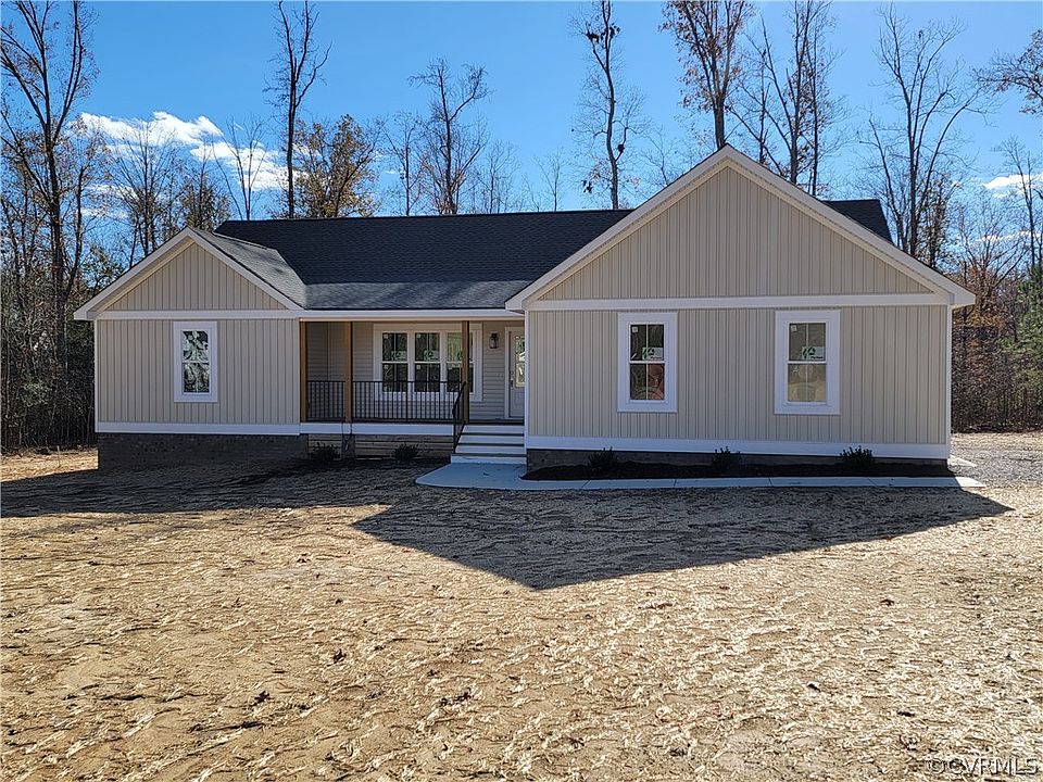 One level open floor plan ranch. Level 1 ACRE lot on quiet street. Vaulted ceiling greatroom, sunroom & kitchen are open to each other. Choose your flooring & extras. LVP flooring is in the living areas, Primary bedroom & hallways, carpet in the 2nd & 3rd bedrooms. Baths have LVT. Kitchen has white cabinets & granite tops, a 6' island w 16" overhang bar area, pantry w/ a barn door & SS appliances. Sunroom has recessed lighting + glass doors to a covered deck + patio.The Primary bedroom is on one side of living area, the 2nd & 3rd bedrooms are on the opposite side for more privacy. Primary suite has a Feature wall, a huge walk-in closet, 32" doorways + large bath w/ a 5' ceramic tile shower, double sink vanity, window & a linen closet. The 2nd bedroom is large & has a private door to the hall bath. The 28'x19' attached side loading garage has an auto opener & just 2 steps up to enter the home. The laundry room has cabinets & granite countertop, W&D hookups, storage closet + pull down stairs to attic storage. There's a conditioned crawl space. NO HOA fees! 5 mil to Seven Springs Marina on Lake Chesdin . Use C&F Mortgage, Kathy Rossi or Buddy Dean and get a $1000 Closing cost credit!