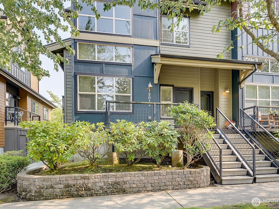 Welcome to Camden at Harbour Pointe. large end unit has high volume soaring ceilings, stainless steel appliances, cozy tiled gas fireplace in great room, 2 primary suites, spacious loft that could easily be converted to 3rd bedroom, slab granite counters, eating nook, real wood cabinets & gorgeous hardwood flooring. Primary suite on main w/ensuite & walk-in closet. Floor-to-ceiling windows bring in tons of light. Energy efficient hydronic heat to help save on utility costs. Enjoy those BBQs on deck located right off kitchen. Relax w/a book while catching the sunset off front covered porch. Handy sizable storage room on lower level. side by side 2 car garage w/2 more spots outside. plenty of guest parking. Close to ferry, shopping & I-5/405.