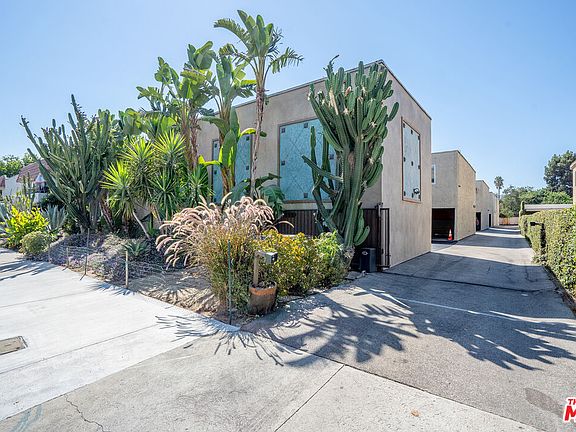 Warm woodworkCenter islandRemodeled upper unitFarmhouse-style kitchenStainless steel appliancesAdobe-inspired exteriorLush succulent landscaping