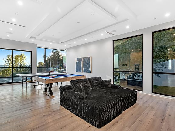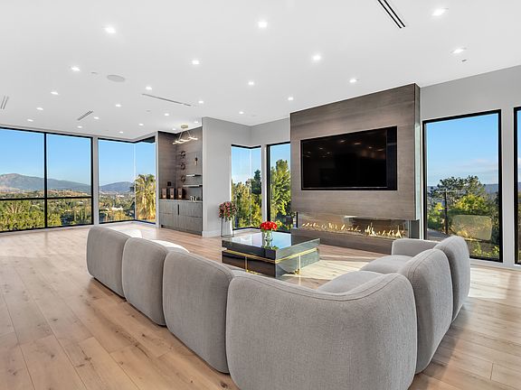Perched at the end of a cul-de-sac on a scenic hilltop, this exquisite 5,000-square-foot estate offers the perfect blend of luxury, comfort, and entertainment. Designed to accommodate up to 12 guests, it provides ample space for relaxation and boasts breathtaking panoramic views. Grand Entrance & Living Spaces: As you arrive, a spacious driveway offers parking for over a dozen vehicles, ideal for hosting gatherings. The striking 12-foot entry door opens to a stunning interior, where floor-to-ceiling glass fills the space with natural light and showcases the surrounding valley. The open-concept layout seamlessly blends elegance with modern functionality, ensuring a truly refined living experience. The gourmet kitchen is a chef's dream, featuring granite countertops, a large eat-in island, an expansive double fridge, and high-end KitchenAid appliances. Adjacent to the kitchen, the formal dining area comfortably seats 10 guests, offering unparalleled views that enhance every meal. The spacious living room boasts a sleek Smart TV niche wall positioned above a linear fireplace, adding warmth and style to the space. Accommodations Sleeps 12 Comfortably This home is thoughtfully designed to ensure a comfortable stay for all guests, with well-appointed sleeping arrangements across both levels: First Floor Sleeping Arrangements: Bedroom 5 A cozy retreat featuring a queen-size bed, TV, and private ensuite bathroom, perfect for two guests. Game Room Two large couches convert into sleeping accommodations, ideal for two small children or one adult. Second-Floor Sleeping Arrangements: Bedroom 1 (Master Suite): This luxurious retreat features a king-size bed, an ensuite bathroom with a soaker tub and glass-enclosed shower, a. walk-in closet, and a private balcony. A dedicated minibar and sitting area make it the perfect space for relaxation. Bedroom 2 (Connected to Master Suite) A versatile space with a trundle bed, office desk, and chair, perfect for two guests. This room also includes a Travel Foldable Portable Bassinet Baby Infant Comfortable Play Yard Crib Cot with Soft Mattress, Breathable Mesh Walls, for an infant and a toddler. Bedroom 3 A stylish bedroom with a queen-size bed and ensuite bathroom, ideal for two guests. Bedroom 4 (Mini-Master Suite) A private oasis featuring a king-size bed, TV, ensuite bathroom, and its own balcony, comfortably sleeping two guests. A dedicated laundry room is conveniently located on the second floor. Outdoor Oasis & Entertainment: Step outside to experience an entertainer's paradise. The infinity-edge pool and spa offer ultimate relaxation, complemented by a waterfall and fire feature for a serene ambiance. The full outdoor kitchen boasts a six-burner grill and stone pizza oven, making it the perfect setting for al fresco dining. As evening falls, ambient lighting and a fire pit create a cozy atmosphere, while multiple seating areas allow guests to fully immerse themselves in the breathtaking surroundings. Whether hosting a gathering or seeking a peaceful retreat, this exceptional estate offers a seamless blend of luxury, comfort, and entertainment for an unforgettable stay. 20 minutes Drive to Universal Studio 1-hour drive to Disney park