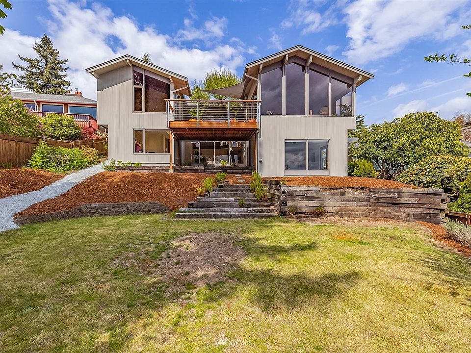 Shorewood on the Sound custom built, view home designed by W.D. Calvin (a Ralph Anderson protege), combines the best of classic NW detail w/mid-century modern flare & was featured as an AIA Home of the Month shortly after it's construction. The mezzanine-style entry welcomes you with a wall of glass that showcases natural light & Puget Sound views. The living spaces boast cedar clad vaulted ceilings, updated baths, 3 bedrooms up (including the primary) & 2 down + an office/den that could become bedroom #6 along w/a great room that completes the space. Nat. gas has been brought in (stub'd in to the kitch). 2 separate HVAC units, tons of storage, & move-in ready condition. $75/yr grants access to the private community beach a few blocks away.