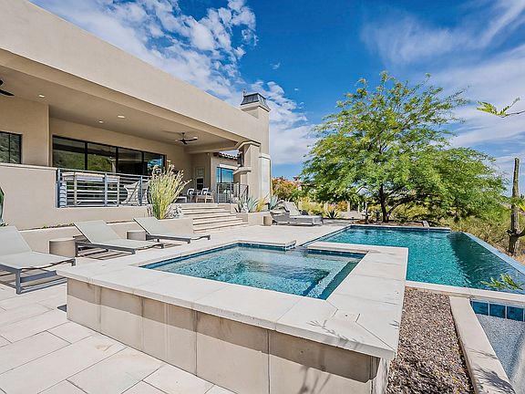 Welcome to this stunning Mediterranean style house located in the desirable gated community of Fountain Hills, AZ. This property boasts four spacious bedrooms, including two master suites, each with their own walk-in closets, and 4.5 bathrooms. The house is designed with 9+ flat ceilings, providing an open and airy feel. The kitchen is a chef's dream, complete with a wet bar and built-in BBQ for all your entertaining needs. Step outside to your private patios and immerse yourself in the beauty of the desert landscaping. For those hot summer days, take a dip in your private pool. The house also features a generous 3 car garage. This property truly offers a luxurious lifestyle in a prime location.