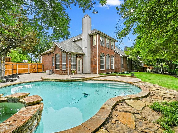 Sparkling poolCozy fireplaceStylish fixturesSweeping golf course viewsFresh paintBackyard retreatStainless steel appliances