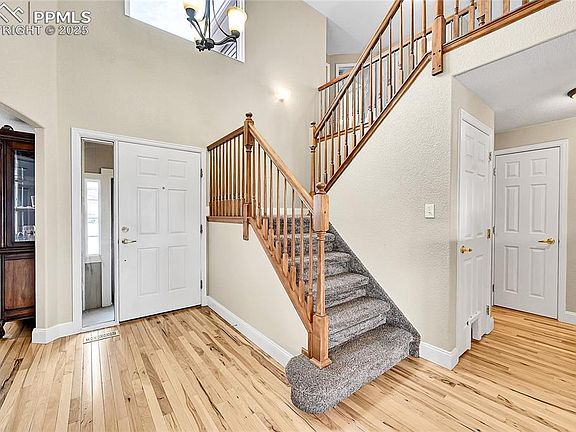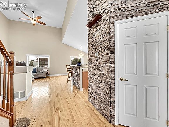 Discover the perfect blend of country living and modern elegance. This stunning 4-bedroom home is nestled on a spacious lot, offering both tranquility and convenience just minutes from Peyton's vibrant shopping, dining, and recreational amenities. With new vinyl siding, energy-efficient windows, new gutters, and fresh exterior paint, this home combines style, durability, and low-maintenance living. Step inside to be welcomed by stone accent walls in the entryway, breakfast bar, and living room setting the tone for the rustic elegance that flows throughout the home. The open-concept kitchen and living room create an inviting space perfect for entertaining, featuring a cozy fireplace, eat-in dining area, and ample natural light. The kitchen boasts modern matching appliances, generous counter space and cabinetry — making meal prep a delight. Retreat to the main-level primary suite, a private sanctuary with a spa-like ensuite bathroom featuring a separate soaking tub, walk-in shower, double vanity, and walk-in closet. Upstairs, you'll find three additional bedrooms and a bonus loft area, perfect for a home office, playroom, or additional living space. Outdoor living is redefined with an exceptional backyard oasis. Enjoy breathtaking views of Pikes Peak while relaxing in the pergola-covered seating area or hosting gatherings in the outdoor kitchen, complete with a gas grill and fridge. The lush landscaping and mature trees provide privacy and serenity, creating the ultimate retreat under the Colorado sky. This home also features a three-car attached garage for ample parking and storage, along with a detached garage/workspace offering endless possibilities for hobbies, projects, or extra storage. Situated close to top-rated schools, parks, and community events, this property offers the best of both worlds — peaceful country living with modern conveniences. Whether you're seeking space, style, or serenity, this home is a rare gem ready to welcome you home.
