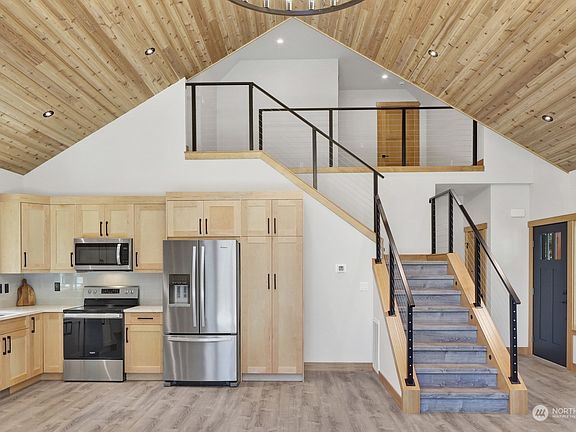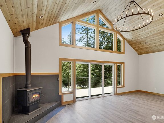 Extraordinary brand new 3 bed, 2.75 bath custom-built home nestled on a sunny cul-de-sac lot, boasting mountain views. This home is designed for seamless entertaining with tons of extras, featuring a great open floor plan, vaulted wood ceiling, open stairway & a cozy wood-burning fireplace, metal roof & AC. The main floor offers spa like primary suite and second bedroom. Step outside to discover an oversized deck & luxurious hot tub, perfect for relaxation & gatherings. This property presents an opportunity to own a stunning glacier retreat near Mt. Baker & Nooksack River. Residents enjoy access to a clubhouse, tennis courts, play ground, river, pool, sauna & more. Experience the best of mountain living in this remarkable home.