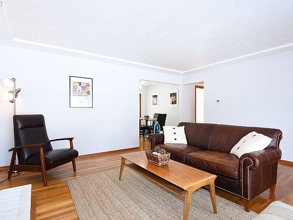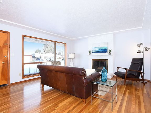 This Parkrose Mid-Century has the perfect blend of vintage charm with today's updates.Hardwood floors throughout the living areas,wood burning fireplace,and large picture window in living room. Spacious kitchen w/vintage cabinets,new vinyl and updated appliances.Dining room w/slider to backyard covered patio. Bath with new shower tile and vinyl flooring.Fresh interior paint thru-out.Large,fenced backyard with toolshed and raised beds.