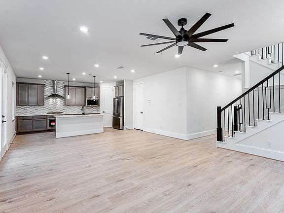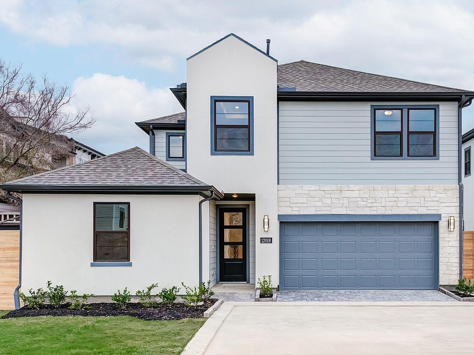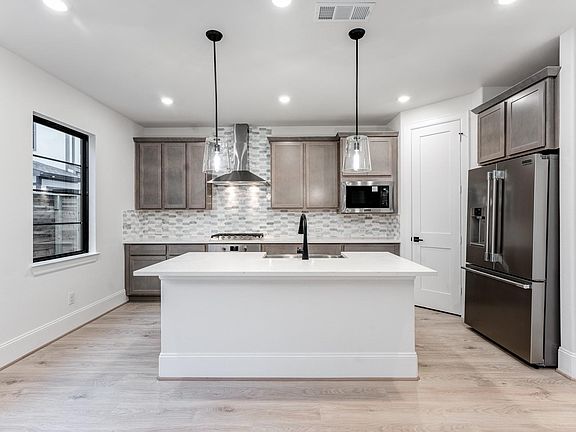 stainless steel appliances, convection oven, pendant lighting, and an oversized island. The large primary suite offers a luxurious bath with a freestanding soaking tub, frameless glass shower, and an expansive walk-in closet. Also located on the upper level is a guest bedroom and bath, as well as a gameroom/flex space. A bedroom and full bath on the 1st floor is ideal for guests or would also make a great home office. Centrally located minutes from major freeways, shopping,