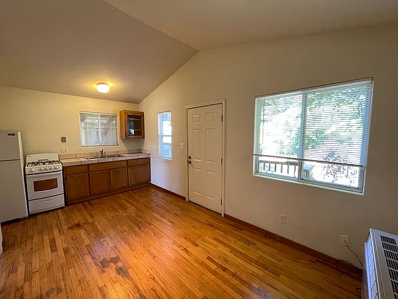 Open living, kitchen area with all wood flooring, tile bath with large sunken tub/Available Now-We answer inquires M-F from 9-5