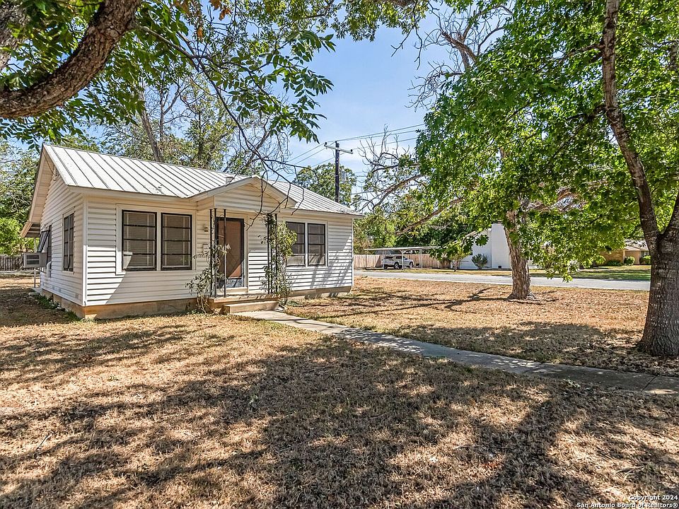 Step back in time with this charming 2 bedroom 1 bath home located on a corner lot. Many original features throughout this property while several additional features were added. Perfect for a rental, remodel or even use of the lot for your new construction. Carport off the back with concrete parking as well as a 25 x 25 shop with roll up door and walk through door. Large pecan trees and elm trees, gas cooking, wood floors, updated wiring, vinyl siding. Conveniently located within the community.