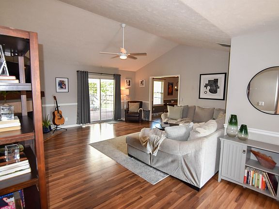 A vaulted ceiling, corner fireplace with custom board & batten detail, and an easy-flow floor plan make this FULL brick ranch by Scott School feel both spacious and welcoming from the moment you walk in. Fantastic 3 bedroom 2 bath on a corner lot with great design and open floor plan. The charming entry includes a handy closet and opens into a spacious great room with a vaulted ceiling, laminate flooring, and a corner gas fireplace. The fireplace features a wood mantel with hidden storage and is accented by a custom board & batten wall that adds a striking focal point to the space. The open layout flows right into the kitchen and dining area, where tile floors, a breakfast bar, pantry and stainless appliances (new range/oven & microwave in 2023) keep things both practical and stylish. The dining is open to the living room so everyone stays connected. Tucked off the kitchen, the laundry room leads straight into the attached 2-car garage, super convenient! The primary bedroom offers a tray ceiling, oversized walk-in closet, and private bath with tub/shower, vanity, and linen storage. Two additional bedrooms, one with a vaulted ceiling and fan, share a big hall bath with updated lighting, tub/shower and tile floor. Durable laminate flooring runs through much of the home, making upkeep a breeze. Out back, a great-level, privacy fenced yard and large deck set the scene for weekend cookouts, quiet evenings outdoors and pets. Recent updates include a new roof (2023) and sump pump (2023). This one is a must-see if you want comfort and a great location near Scott School.