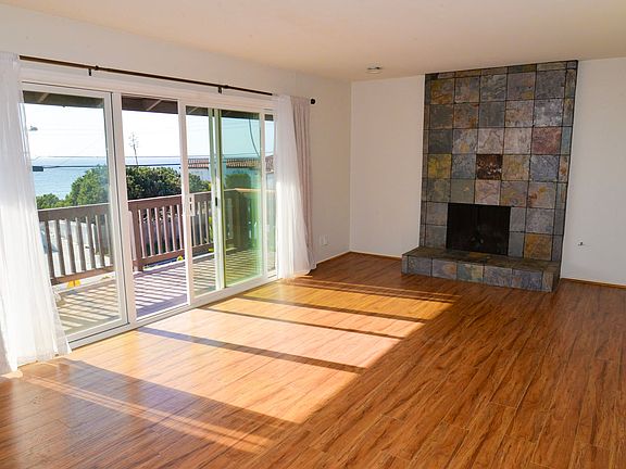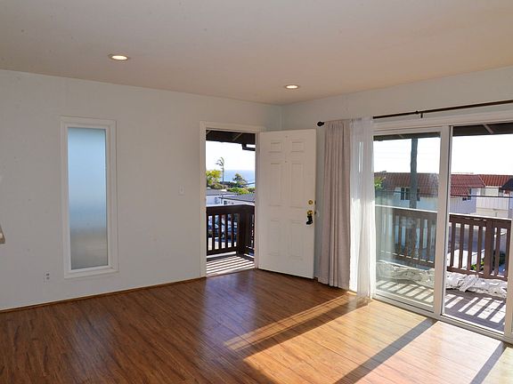 Location! Location! Location! Awesome Ocean View! Upper Level two bedroom 1 bath unit with OCEAN VIEW! - Just across the street from public stairs to beach and walking trail sits this darling beach bungalow style UPPER LEVEL two bedroom one full bath unit with nice size balcony/deck to enjoy the brilliant pacific coast sunsets, breezes and OCEAN VIEW! Fresh Paint, Hard flooring, fireplace in living room, granite counters in kitchen and bathroom. Unit includes 1 car garage and shared coin op laundry room. Building has lovely curbside appeal. Walking distance to beach! LOVE WHERE YOU LIVE!
