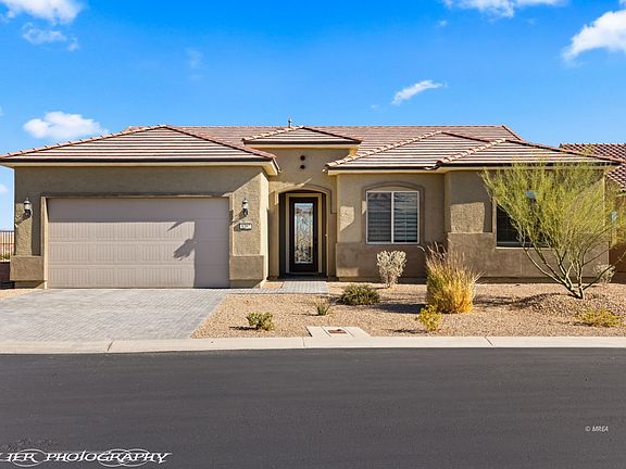 Pursuit Model with a View. Located in the Outlook Point Subdivision of Sun City Mesquite. Enjoy modern desert living with panoramic views in this 2,189 sq. ft. open-concept home in Sun City Mesquite. Featuring 2 bedrooms, 2 baths, and a den/office, this upgraded home includes a beautiful extended sunroom that expands the dining area and captures panoramic mountain views - visible from most rooms, including the primary suite. The primary suite offers a large walk-in shower and oversized closet. Appliances include refrigerator, stove, microwave, dishwasher, washer, and dryer. Water softener, natural gas water heater, and gas range option add convenience. Low-maintenance xeriscape landscaping completes this exceptional property. Residents enjoy fitness facilities, pools, tennis courts, and more in this premier 55+ community.