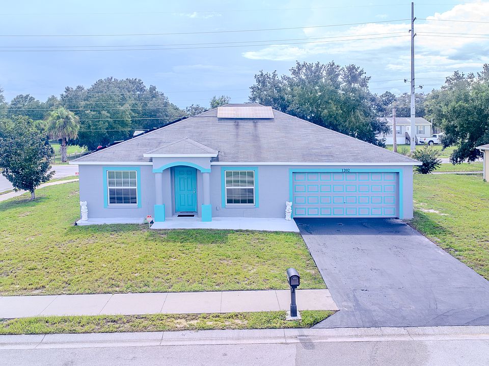 Stylish 3-Bedroom, 2-Bath Home on a corner lot with Modern Upgrades Step into this beautifully refreshed 3/2 featuring fresh interior and exterior paint, adding a crisp, modern touch. The kitchen is a chef's delight with upgraded stainless steel appliances, including a Bluetooth-enabled stove and microwave for convenience and innovation. Elegant Spanish mosaic tiles infuse character and charm throughout the home. Relax or entertain on the upgraded lanai, now enhanced with stunning stone anti-grip tile for safety and style, and extended seamlessly off the patio for extra outdoor living space. This move-in-ready home blends comfort, functionality, and tasteful design-perfect for modern living. This property qualifies for USDA!