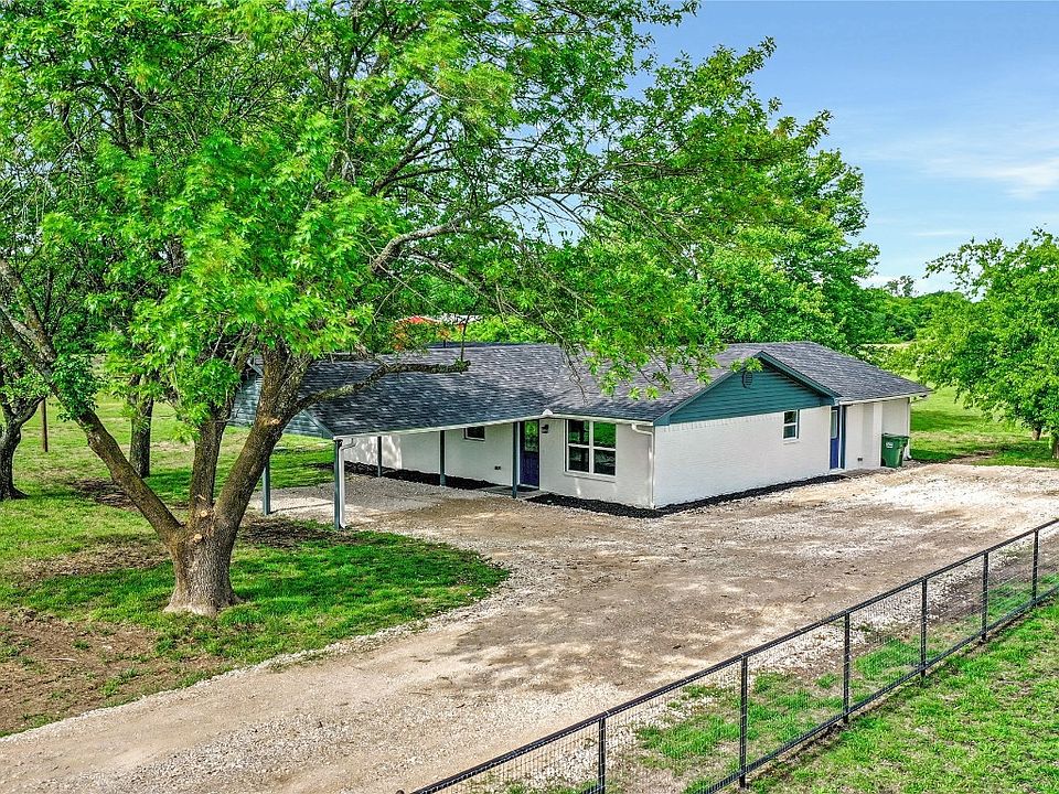 Are you looking for a beautifully remodeled country home with a modern interior design? This home is just a couple of miles from Hwy 75 with easy access to both Grayson on Collin County. The home has gone through an extensive remodel to open up the living area to the kitchen, add a large pantry and utility room as well as a beautiful master suite that has a ensuite bathroom with a beautiful large shower and walk in closet. The roof has been replaced and new gutters installed. The electrical has been updated and all new lighting fixtures, fans, outlets and switches. The plumbing system has been updated and the secondary bathroom has a new tub, sink, faucets and toilet. Granite counter tops in both bathrooms and kitchen. New paint in the interior and exterior. New luxury vinyl plank flooring and carpet throughout. Outside you will find a few large mature trees, an acre of a grassed yard where horses, chickens and cows are welcome. Conveniently located and ready for a new family.