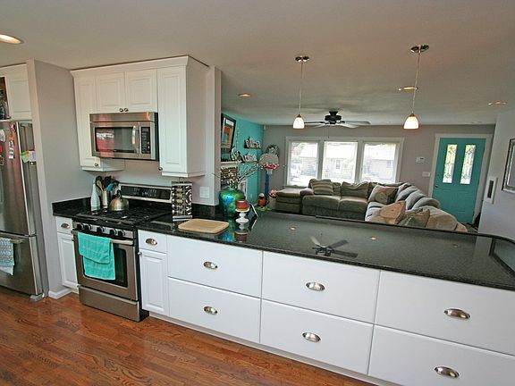 Completely remodeled one level home on corner lot. Huge kitchen with open feel to great room and dining, looking out to large patio w/fireplace and fenced yard. Newer roof, siding, windows, kitchen and bathrooms. All updated ss appliances including two bev/wine fridges, granite, tile, hardwood, basically feels like a new home. This home is NOT a drive-by.