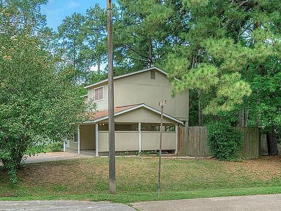 Charming three-bedroom rental home at the front of The Woodlands on a desirable corner lot with a two-car attached carport. The welcoming front porch leads into an open floor plan with laminate wood flooring throughout the main living areas. The spacious living and dining areas are perfect for entertaining, while the kitchen offers ample cabinet space and modern amenities. The primary bedroom features an updated en-suite bathroom with a walk-in shower and vessel sink. Two additional bedrooms share a second full bathroom. Enjoy outdoor living on the covered back patio overlooking a large, tree-shaded yard. Conveniently located near shopping, dining, and major highways don't miss this exceptional rental opportunity!