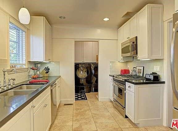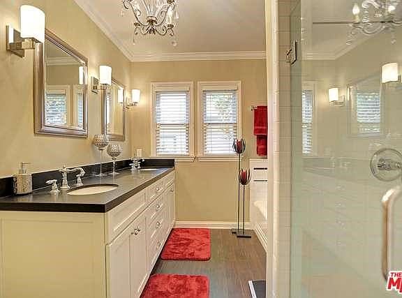 "Carthay" Classic 3 Bedroom/2 Bath elegantly renovated lower unit of duplex. Enter into sophisticated Foyer and walk into a lavish living room with an elegant fireplace and beautiful windows. Entertain in your formal Dining Room, and enjoy reading your paper & having breakfast in your proper Breakfast Room! The tastefully remodeled Kitchen features custom wood cabinets, stainless steel appliances (stove/oven, refrigerator, dishwasher & microwave), granite counter tops and travertine floors. Make life easier with an inside Laundry rm w/ full size front loading washer & dryer. Master Suite features dual vanities, dual showers & shower bench, two separate organized walk-in closets, and French doors that open onto a timeless and private backyard. Additional features include; refinished hardwood floors, newly installed casement and double-hung windows, central air and heating, & remote controlled garage parking. Live in style in the heart of the city...a true classic beauty!