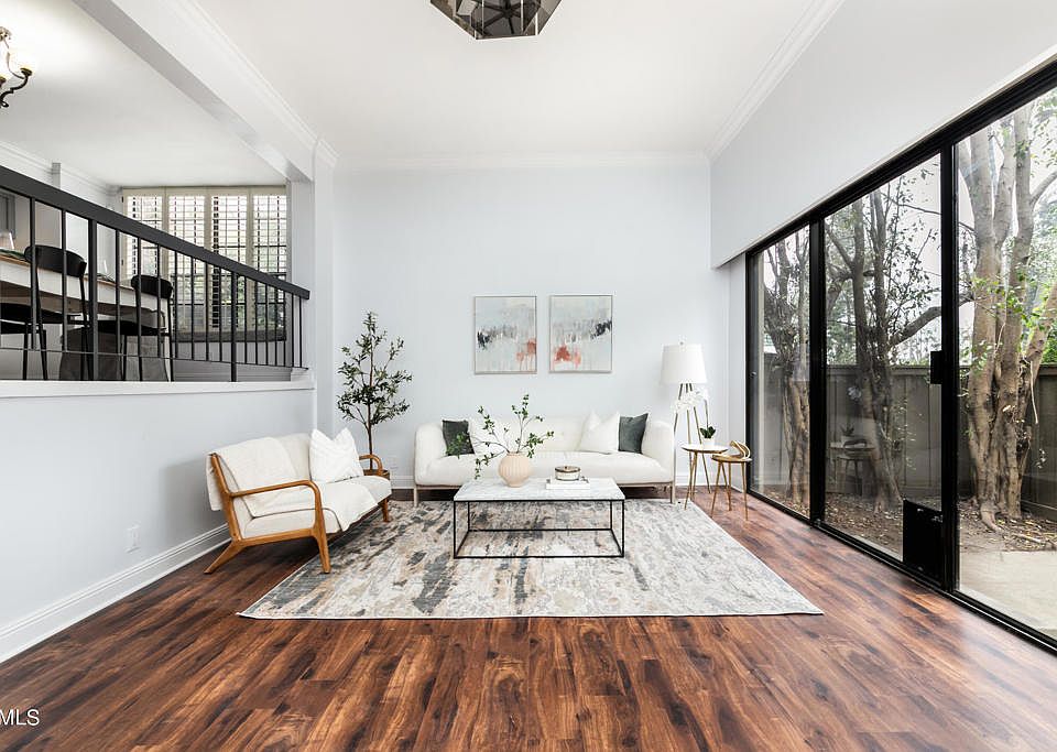 Stunning South Pasadena townhome! Rare and quiet end-unit with a smart and sophisticated split-level design. Filled with natural light, soaring ceilings, laminate wood-like flooring, and fresh paint throughout. The living room opens to a lovely enclosed patio. The dining room shares an open counter with the newly renovated kitchen with new stainless steel appliances, countertops and cabinets. Great for entertaining! Upstairs are two bedrooms suites. An open and airy primary suite with a beautiful bathroom. the second bedroom opens to a spacious and sunny patio. A large two-car attached garage with laundry hook-ups and shelving for storage. Just a short distance to the Metro Gold Line, gourmet grocery stores, restaurants, Arroyo Vista Elementary School, South Pasadena Library, Mission shops, and the famous and loved by-all, Farmers Market. High-ranking and sought-after South Pasadena School district offering immersion programs.