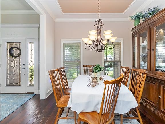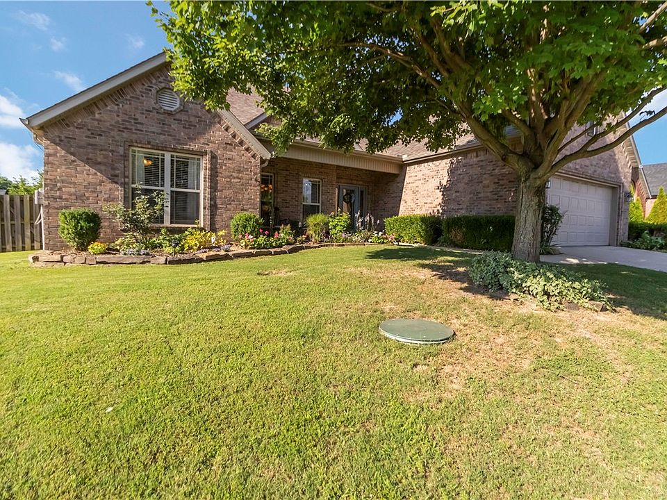 Gorgeous, well-maintained home featuring vaulted ceilings, crown molding, and a spacious split-floor plan. The open kitchen showcases stainless steel appliances and granite countertops. Upstairs, a bonus room offers versatility—ideal for a home office, playroom, or gym. The primary bedroom includes a walk-in closet, a jetted tub, and a separate walk-in shower. Enjoy the privacy fenced backyard perfect for relaxing or entertaining. It also features an organic vegetable garden with automated irrigation system and a flourishing thornless blackberry patch. Located conveniently near I-49 and 71B, as well as nearby shopping centers, schools, and parks. Refrigerator conveys with the home.