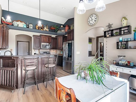 7 bedroom, 3 bath home located in the coveted westside Liberty Park neighborhood and Maize school district. Fresh interior paint, new carpet, custom dark maple woodwork throughout, gas fireplace for those chilly nights and the vaulted/9 foot ceilings on the main floor will give the spacious feel you are looking for. Large main floor master suite offers a tiered ceiling and a large en-suite bathroom with corner soaker tub, separate shower and walk-in closet. But wait, there’s more! Downstairs you will find the ultimate area perfect for entertaining with a custom wet bar, large living room area, hidden closet under the stairs and a 120” projector that’s just right for movie nights! Just off the dining area is a covered deck that overlooks the large privacy fenced yard with play area for the kids, an irrigation well and sprinkler system. The 3 car garage is perfect to fit your vehicles and plenty of room for storage.