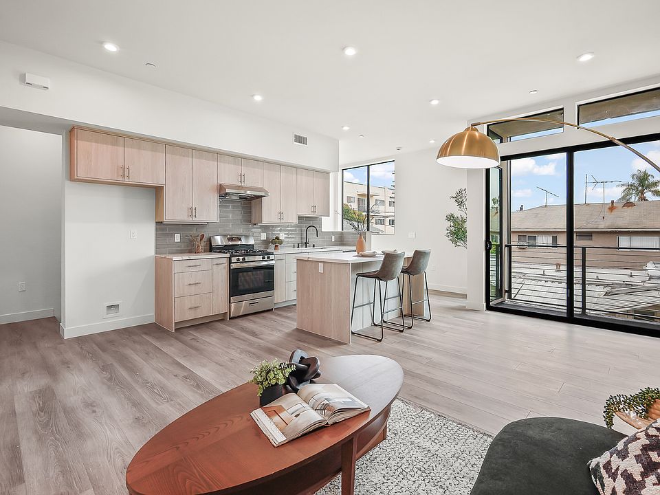 Welcome to Residence 1202, the third home in this modern five-residence enclave nestled in the heart of West Hollywood. This sophisticated 3-bedroom, 3-bathroom residence offers 1,704 square feet of thoughtfully designed living space and is ideally positioned at the center of the community for both privacy and convenience.The ground floor features a spacious two-car garage with direct entry, leading to an inviting foyer and stairway access. On the second level, an open-concept layout unfolds with a sleek, modern kitchen boasting premium appliances, custom cabinetry, and a generous island perfect for entertaining or casual dining. High ceilings and a dramatic wall of windows flood the living area with natural light, enhancing the sense of space and warmth. This floor also includes a versatile bedroom with a large closet, a full bathroom, and a laundry closet for added convenience.Upstairs, the third floor is home to the tranquil primary suite, complete with a spa-like ensuite bathroom and a walk-in closet. An additional bedroom and full bath complete this level, offering flexibility for guests, office space, or family living.Topping it all off is a private rooftop patio an ideal space for lounging, dining, or barbecuing while enjoying sweeping views of the Hollywood Sign and glowing city sunsets. Set within one of L.A.'s most iconic neighborhoods, Residence 1202 offers unmatched access to West Hollywood's premier dining, shopping, and entertainment. Just moments from Melrose Avenue, Santa Monica Boulevard, and hotspots like Catch, Craigs, and the Design District, this home delivers elevated design and a vibrant lifestyle that's distinctly WeHo.