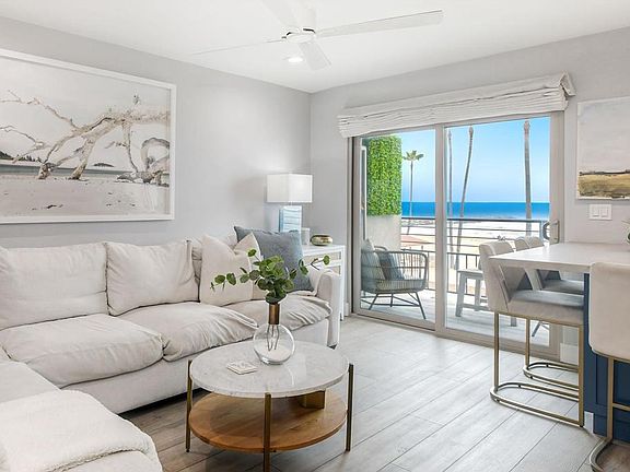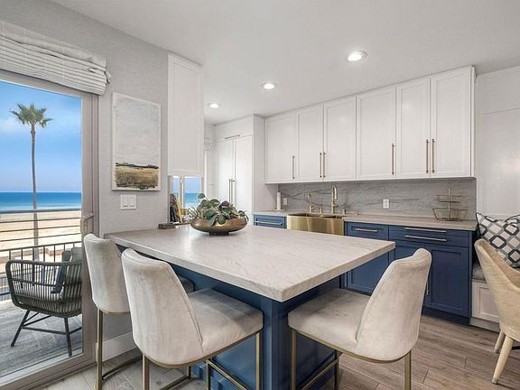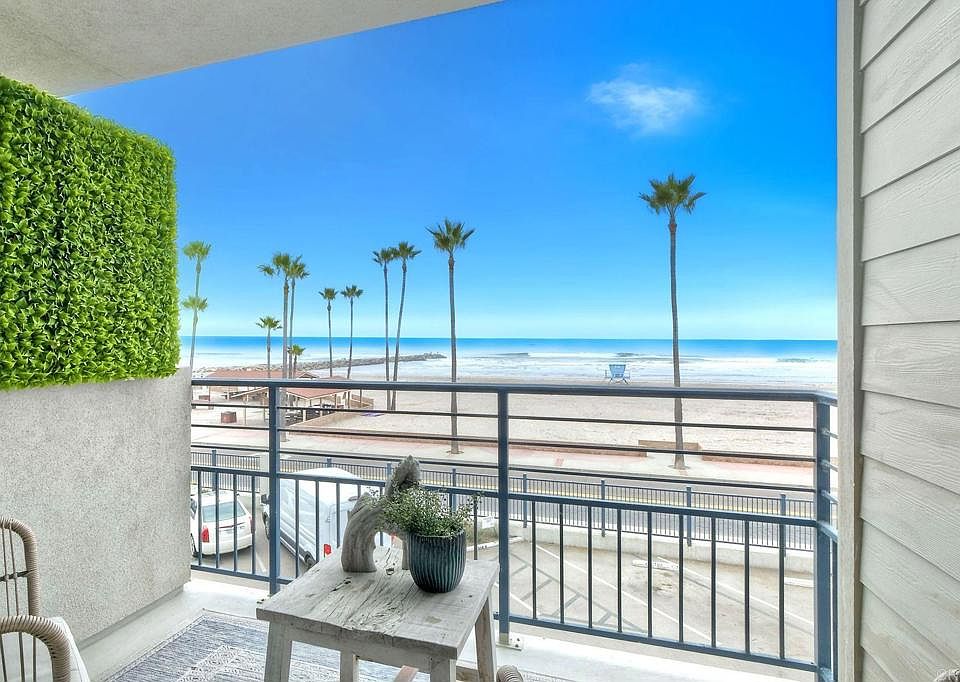This extraordinary ocean-view home, fully renovated by renowned Beverly Hills designer Christopher Grubb, is nothing short of exquisite. Though just a one-bedroom, every inch of this residence has been thoughtfully curated with luxury and functionality in mind. With no one above you, the open-concept, sun-drenched layout showcases wood flooring, state-of-the-art appliances and custom built-ins including an integrated refrigerator and dishwasher and Picture Televisions in both the living room and bedroom. The spacious dining area easily accommodates family and guests, while the serene bedroom features generous closet space and a beautifully appointed en-suite bathroom with walk-in tiled shower and dual vanities. Step onto your private balcony to take in unobstructed, panoramic ocean views, the perfect spot to relax and unwind. The community offers resort-style amenities including a heated pool and spa, BBQ area, elevators, laundry on every floor, gated parking and guest access. Ideally located near the Harbor, beaches, restaurants, and shops, this property captures the very best of coastal Oceanside living. With HOA-approved short-term rentals, this is an ideal choice for a primary residence, vacation rental or investment property.